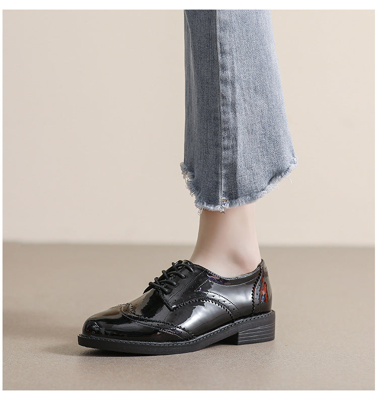 Chaussures Féminines en Cuir avec Lacets, Style Britannique