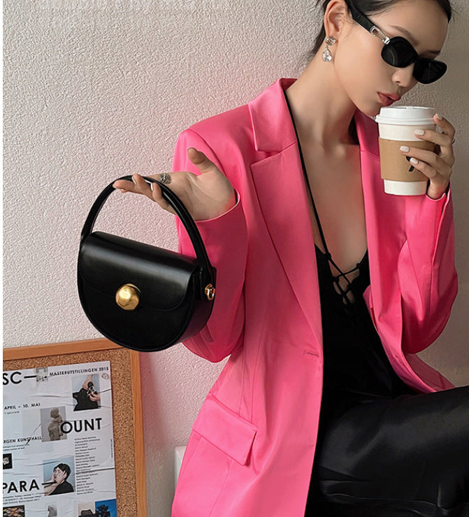 - Design artistique : Une forme arrondie élégante rehaussée par une fermeture dorée en forme de sphère, rappelant un style céleste et raffiné.